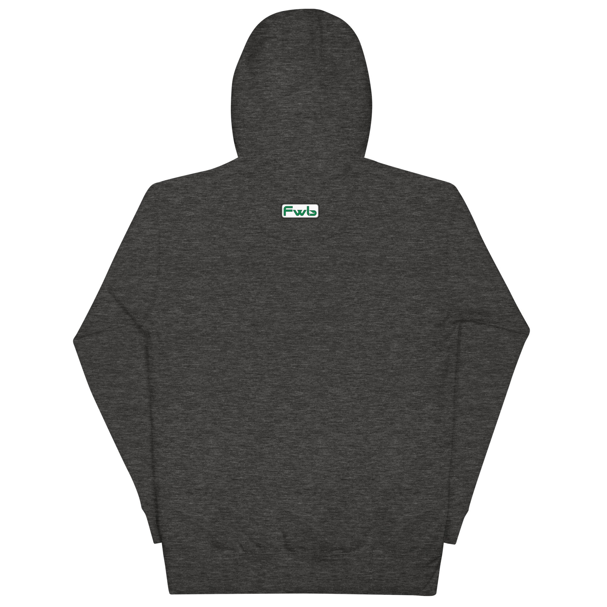 FWB grey charcoal hoodie with classic FWB logo on back.